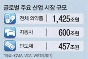 2018년도 국내 업종별 수출 증가율에서 봐도 반도체는 1267억불(전년 대비 29.4% 증가), 화장품 26.6억불(전년 대비 26.4% 증가)인데 의약품은 37억불(전년 대비 17.2% 증가)에 그쳤기 때문이다. 증가폭이 제일 높아야 하는데 그렇지 못한 것은 그만큼 정부나 기업들이 우리에게 바이오·제약 산업이 대한민국의 미래에 어떤 기여를 할지를 충분히 숙지하지 못하고 있음을 말해 준다. 여기에도 한 일화가 있다. 김대중 정부가 2002년을 바이오 원년으로 선언했다. 그 당시 마크로젠 서정선 회장이 바이오 사업에 대해 청와대에서 브리핑 했을 때 김대중 대통령이 "내가 감옥에 있을 때 IT가 중요하다고 해서 IT를 공부했는데 지금은 또 BT(Bio Technology· 생명공학)가 중요하다면 내가 다시 감옥에 갈 수도 없고 난감하다."라는 재미난 일화가 지금도 일반에 회자되고 있다. 지금의 K 바이오 산업의 혁혁한 성과는 17년간 정부와 기업 모두가 바이오 성과를 위해 열심히 뛴 결과물이다. 그러나 바이오시밀러(바이오의약품복제약)에서 그칠 일이 아니다. 바이오·제약 시장으로 외연을 넓혀 글로벌 의약품 시장에서 진정한 승부를 겨루어야 한다. 따라서 신약 개발을 서둘러 신약 도전에 나설 때이다. 삼성바이오로직스의 분식회계 논란 확대와 코오롱생명과학의 골관절염 유전자 치료제 `인보사` 품목 허가 취소, 코오롱생명과학에 대한 검찰 압수수색 등의 최근 바이오 업계를 둘러싸고 부정적인 이슈가 한국의 중요 미래 먹거리 사업에 걸림돌이 되어서는 안된다.