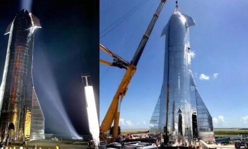 화성 우주선 스타십, 2019년 9월28일 오후 미국 택사스주 브라운스빌 보카치카 발사장에 모습을 드러냈다. 택사스 발사장에 등장한 스타십 MK1은 높이가 50m에 달한다.